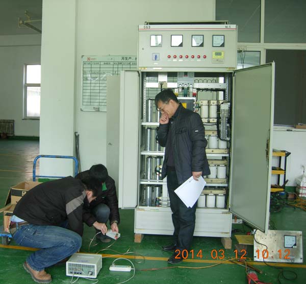 圖四:技術(shù)人員現(xiàn)場(chǎng)展示DETSC低壓動(dòng)態(tài)無(wú)功補(bǔ)償裝置